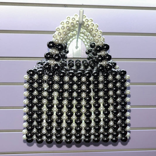 CLUTCH WITH BLACK & WHITE PEARLS